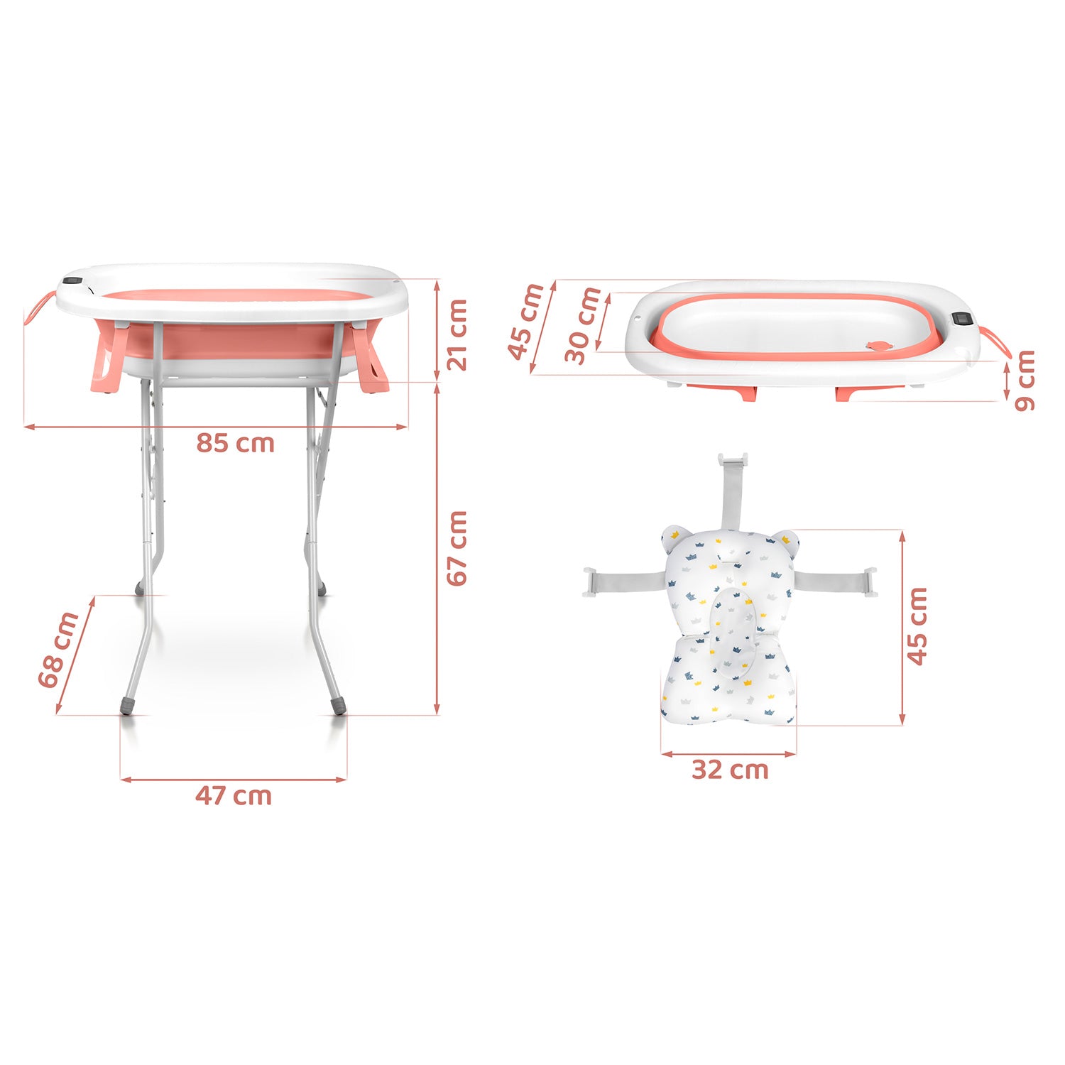 Paverskite kūdikio maudynes malonia ir saugia patirtimi su šia išskirtine sulankstoma kūdikių vonelė su termometru, įdėklu naujagimiui bei stovu. Ji sukurta tam, kad lydėtų jūsų vaiką nuo pirmųjų dienų iki aktyvaus mažylio amžiaus — vienas sprendimas metams į priekį!